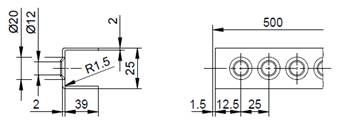 Dimension: 2mm thk x 25mm x 39mm x 500mmLG